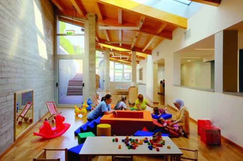 ccd studio設(shè)計(jì)的位于意大利維尼奧拉的Barbapapà幼兒園,是一項(xiàng)舉辦的設(shè)計(jì)競(jìng)賽。該幼兒園位于城市開(kāi)發(fā)區(qū)的邊緣地帶的山坡之上,離城市歷史中心并不太遠(yuǎn),它可以容納60個(gè)兒童,由4間教室組成。工程的目標(biāo)是達(dá)到可持續(xù)性的要求,這點(diǎn)從建筑的各個(gè)方面都可以體現(xiàn)出來(lái),并且建筑本身也將這種可持續(xù)性的價(jià)值傳遞給了孩子們。
