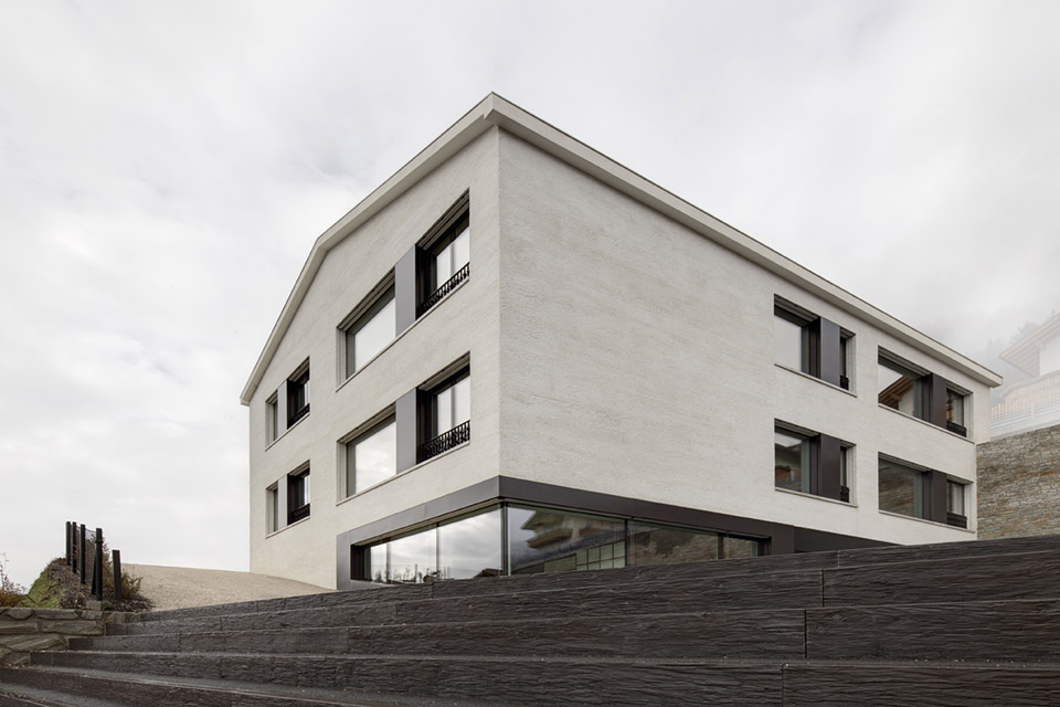 就像這些山區的民居建筑一樣,他們也把自己的體重靠在山坡上.。這兩個主體結構的位置是由多功能廳連接的,它也為公眾服務.。學校周圍的慷慨開放的空間,作為兒童游樂場和運動區。此外,這些空間成為一個露天舞臺,通過額外的元素,最受青睞的性格一般可用的會議afers鎮的地方。顏色和材料的概念正在執行減少的外觀,關于建筑物的大小和體積。它強調和諧融入村莊周圍。白色粉刷外墻,其結構一直保持粗糙,給直接對比黑暗的電化鋁窗框。