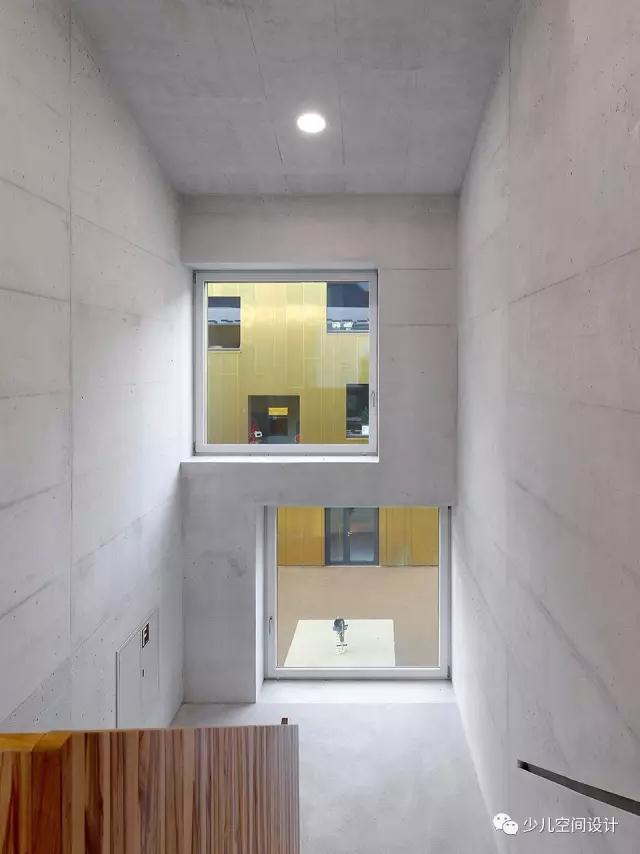 建筑一共三層,地面層由自助餐廳、廚房、學(xué)齡前兒童的衣帽間和一些活動區(qū)域如閱讀區(qū),運動區(qū)組成。咖啡廳與室外空間直接相連。托兒所位于二樓配備有電梯出入口和遮擋露臺。另一棟建筑全部由托兒所“l(fā)e nid”組成。自助餐廳,廚房,衣帽間位于以及協(xié)調(diào)員辦公室供兒童使用。各自占據(jù)了整整一層,空間排列方式大同小異。有供暖的地下通道方便人們在地下穿行。(幼兒園室內(nèi)設(shè)計)