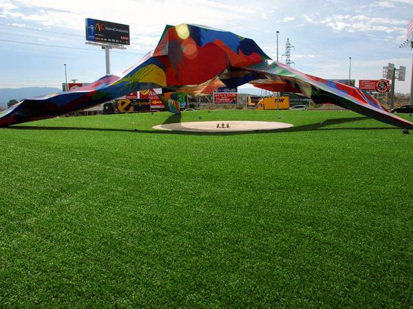 草坪獨特的編制工藝及20的草高造就了草坪的超強拔出力,防止幼兒拔草誤食等安全問題。人造草場地使用率高,既減震、以無噪音、安全無毒、富有彈性,阻燃性能好等特點,很適合于學校使用,是現時最佳的活動、訓練、比賽場地。